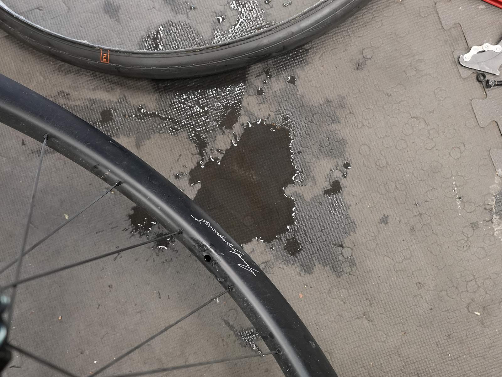 It wasn’t until I was swapping tires and had them off the bike that I noticed the sloshing sound both of the wheels. Fortunately, it didn’t get into the tires, it stayed in the rims, and removing the valve stem (once the tire was off) let me pour it out easily.